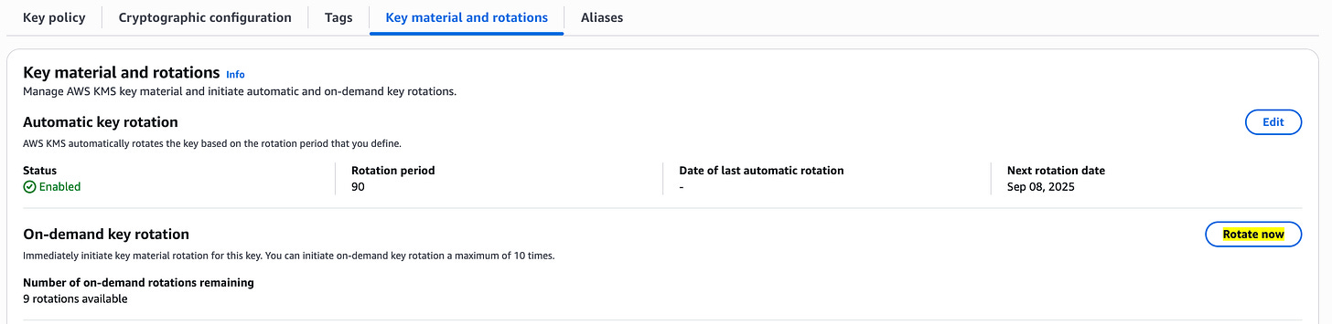 How to use on-demand rotation for AWS KMS imported keys. Link.