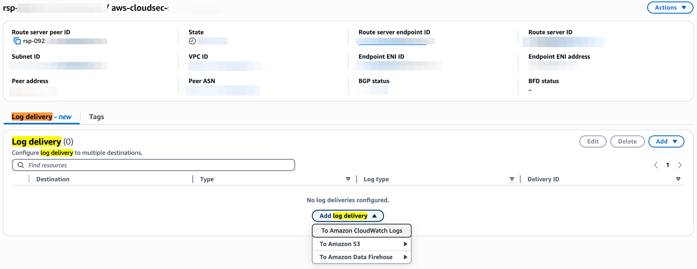 Amazon VPC Route Server has added new network metrics to monitor BGP and BFD sessions, troubleshoot connectivity, and view network health in real-time. This update enables faster, independent diagnosis of network issues, with flexible log delivery to CloudWatch, S3, and more. Link. For example, here are my log delivery options: